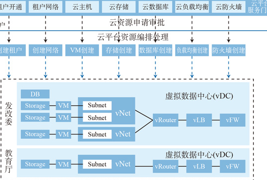 1、云服務(wù)門(mén)戶(hù):提供服務(wù)目錄,包括云主機(jī)、云存儲(chǔ)、云數(shù)據(jù)庫(kù)、云負(fù)載均衡、云安全等服務(wù),以及相應(yīng)的開(kāi)戶(hù)、租戶(hù)網(wǎng)絡(luò)等;各廳局委辦租戶(hù)用戶(hù)可以根據(jù)業(yè)務(wù)應(yīng)用的部署需要,在此門(mén)戶(hù)上選擇相應(yīng)的服務(wù)項(xiàng)進(jìn)行申請(qǐng)審批。審批之后自動(dòng)生成相應(yīng)資源。